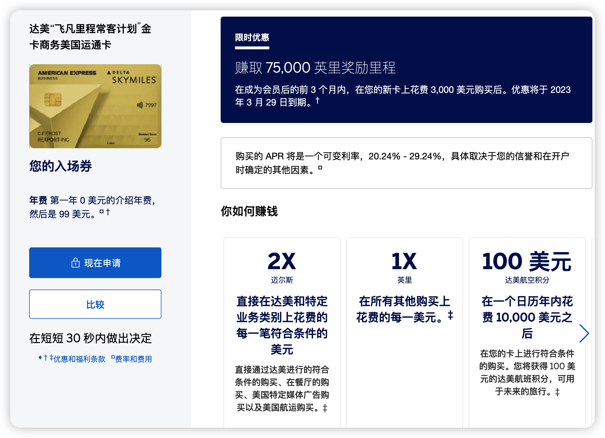 Amex运通商业卡申请记录-Delta SkyMiles® Gold Card from American Express