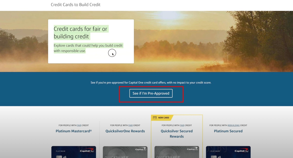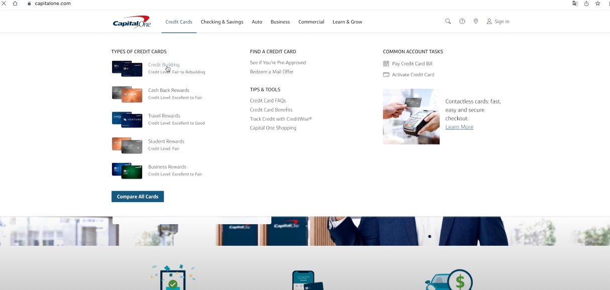我们现在来到capital one的官网。点击左上角的信用卡。