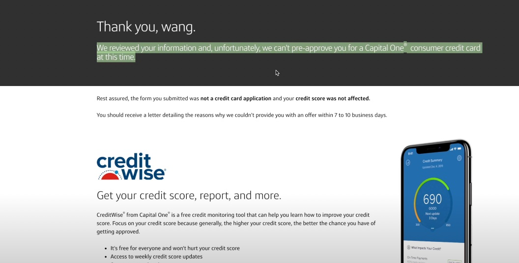 如果说你没有美国的SSN和信用记录。那么我们可以只通过ITIN就可以申请到Capital One信用卡。