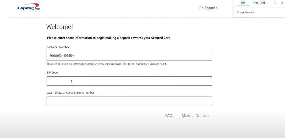 收到这个邮件的时候,我们就需要给押金信用卡来进行入金。邮件里会告诉入金的期限,必须在这个期限之前入金,如果不入金的话,信用卡申请也就自动作废了。我们在邮件里面直接去点击链接,点击这个链接进来之后,输入自己申请的时候填邮编和ITIN后四位。