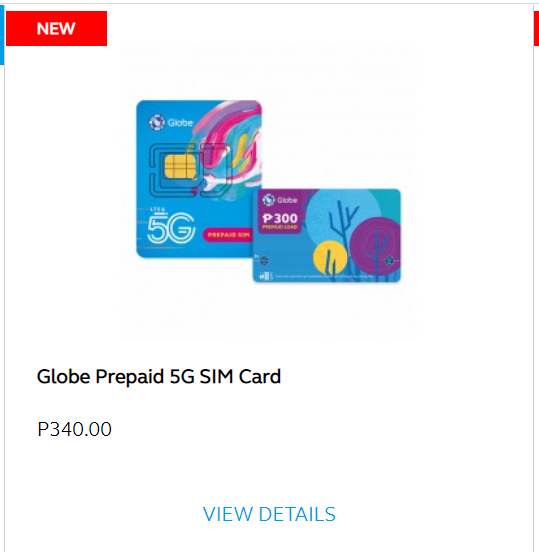 2.找到Globe Prepaid 5G SIM Card,點擊VIEW DETAILS