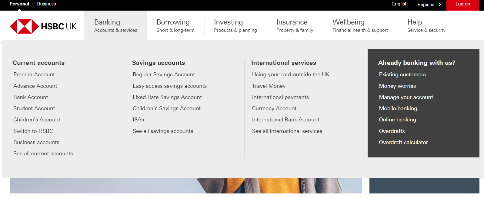1.打開HSBC UK官網,點擊Banking
