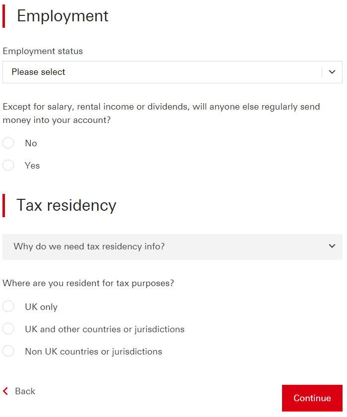 7.輸入職業訊息以及稅務居民身份,然後點擊Continue