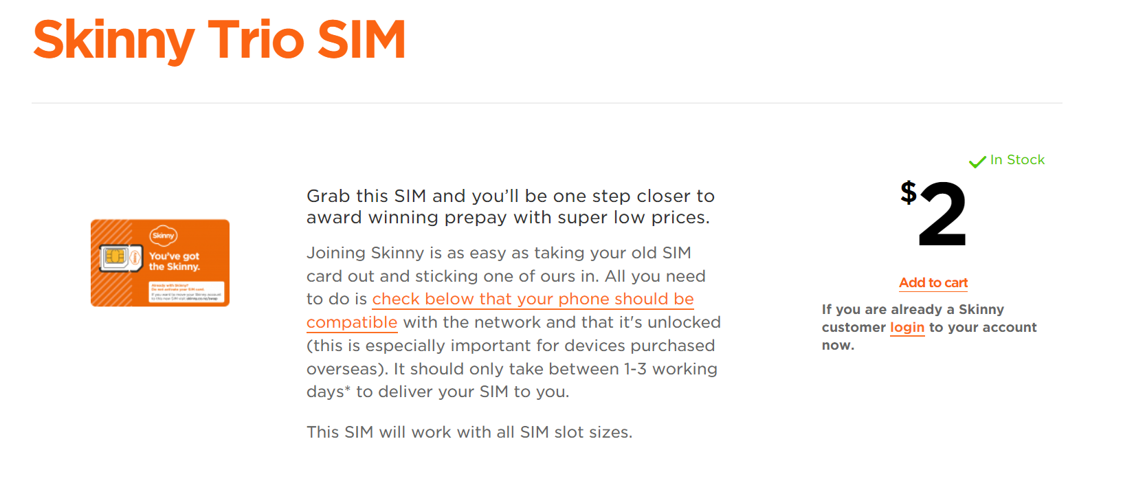 Skinny 是Spark NZ 拥有的MVNO。它的商业模式是以低价提供廉价的预付费SIM卡,以防2Degrees。它在3G 和4G/LTE 上使用Spark 网络。请记住,您的设备应该能够支持850 MHz 3G 和700 MHz(频段28)4G 才能使用Skinny。
