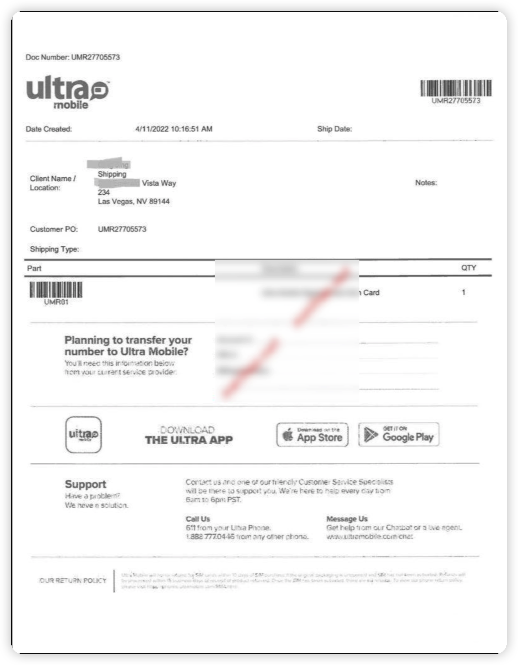 如果发生此类情况,可以联系Ultra mobile在线人工客服/电话客服。申请更换一个美国号码。更换号码时,SIM卡不变,ultra mobile官网的账户余额、登录密码都不变。只是换了号码。