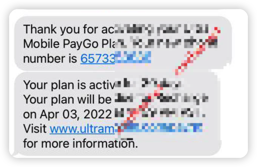 图1 Thanks you for activating your Ultra Mobile PayGo Plan