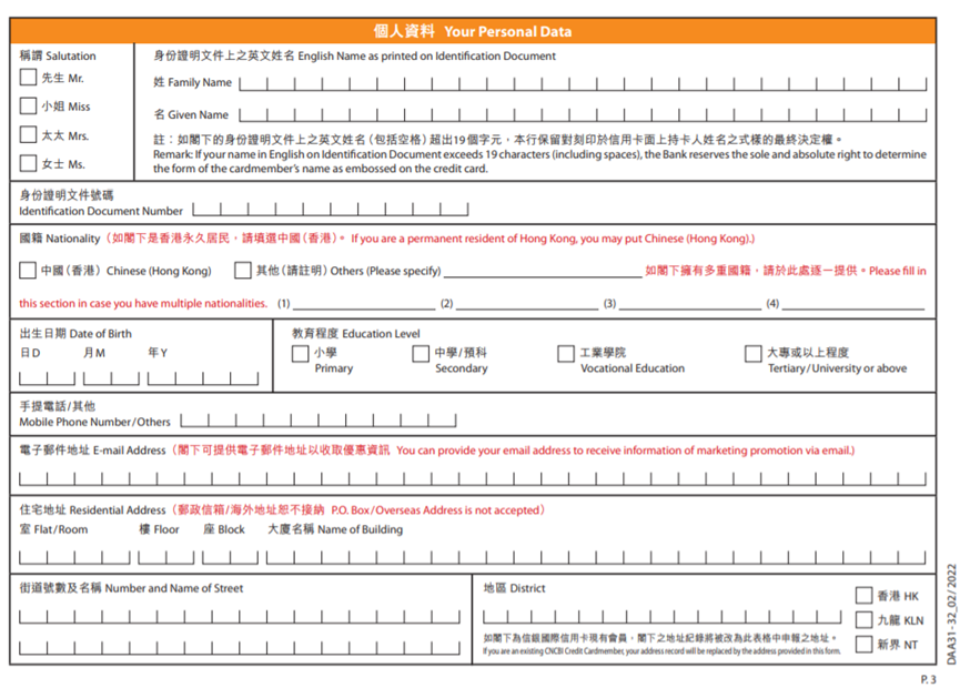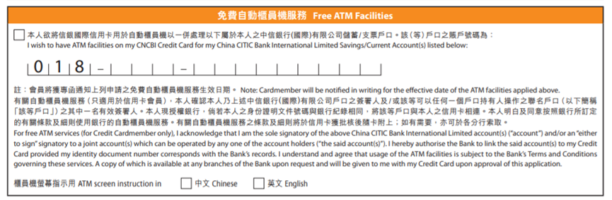 要申請信用卡的前提呢,就是你必須要持有中信銀行(國際)的銀行帳戶,並且在提交申請時各幣種餘額大於等值5萬港幣